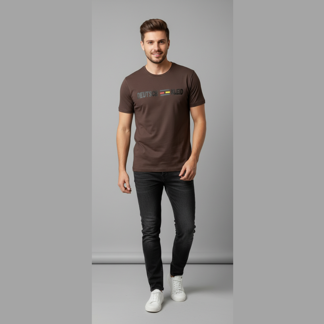 Discover the warmth and versatility of our brown t-shirt collection at Deutsch Kleid. Brown is a color that exudes earthy charm and timeless style, and our brown t-shirts are designed to bring that enduring appeal to your wardrobe.